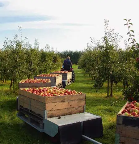 De oogst is binnen en het fruit wordt afgevoerd bij Baas aan de Oosteinderweg in Wognum. (Foto TM)
