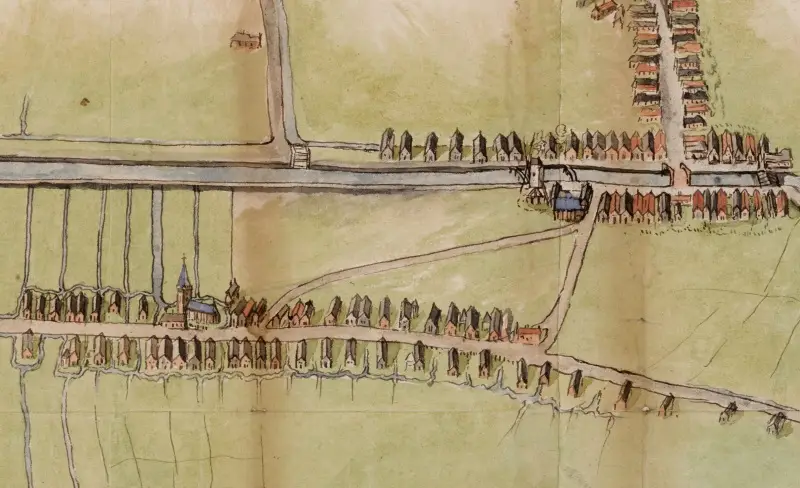 Het Slimpad in Spanbroek op een kaart uit 1591. (kaart Westfries Archief)