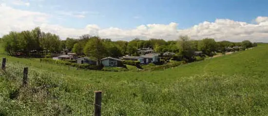 De Proefpolder gezien vanuit het oosten vanaf de Dijkweg. In de lager gelegen kom bevinden zich de vakantiewoningen van het recreatiepark ‘Het Grootslag’. (Foto TM)